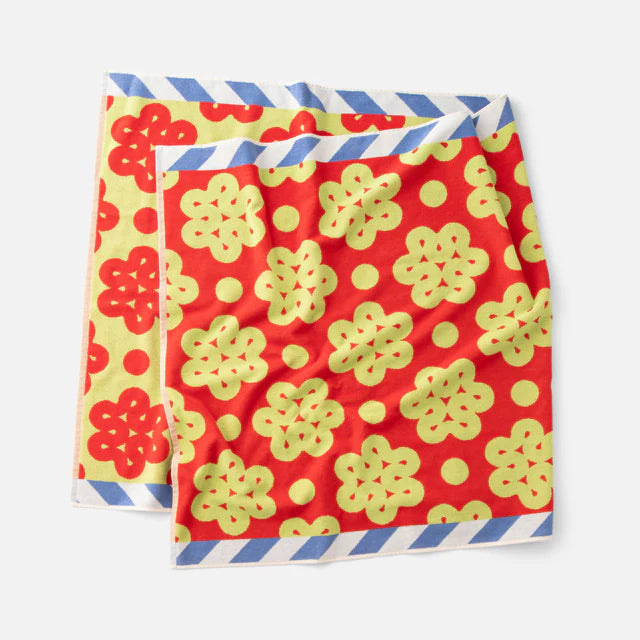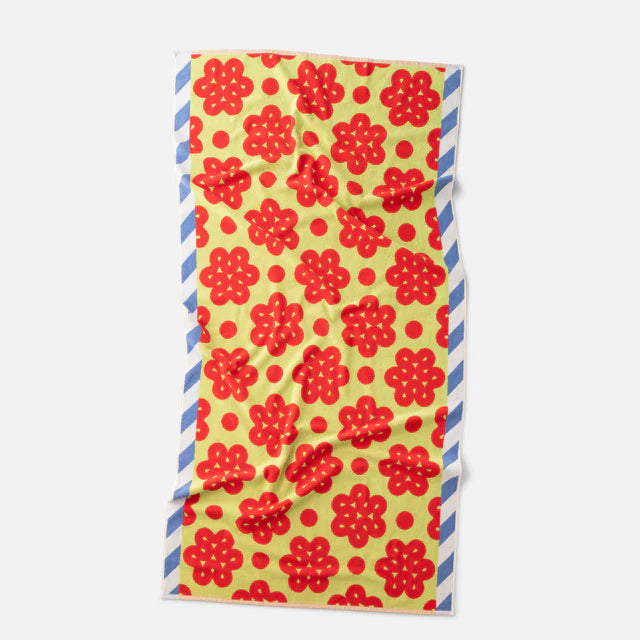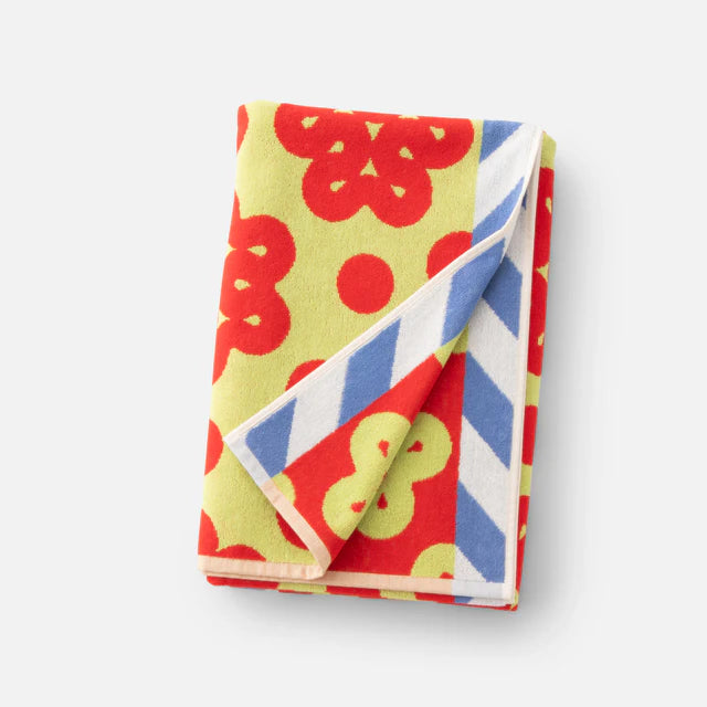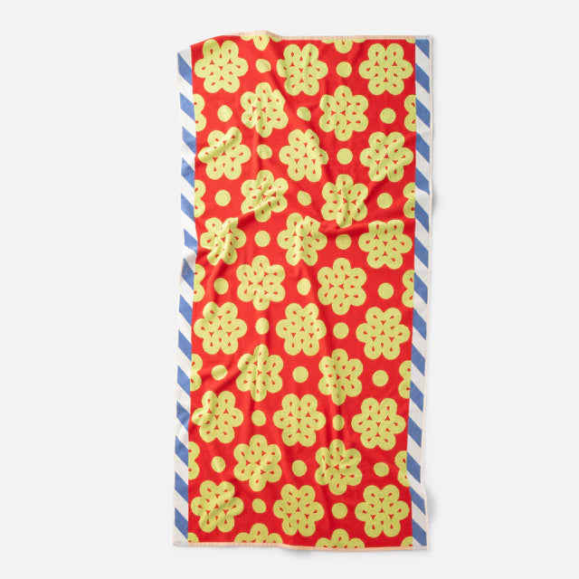 Beach towels offer vibrant combinations of color, pattern, and personality for your summer essentials. Each towel reflects the brand's signature playful aesthetic, showcasing a unique graphic theme—from bold sunbursts and sketchy florals to geometric grids and unexpected color combinations.