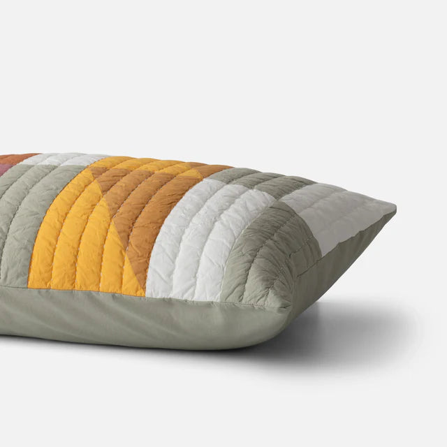 Add a touch of playful freshness to any bedding set with these fun, modern rooftop pillowcases. Featuring a bold pattern in earth tones, red, and white, these pillowcases coordinate perfectly with your duvet cover or stand alone for a statement piece. The hidden zipper closure creates a simple, modern look, while the soft cotton fabric is both comfortable and eye-catching. These playful and functional pillowcases will elevate your bedroom and add a touch of color. Made in India, 100% cotton.